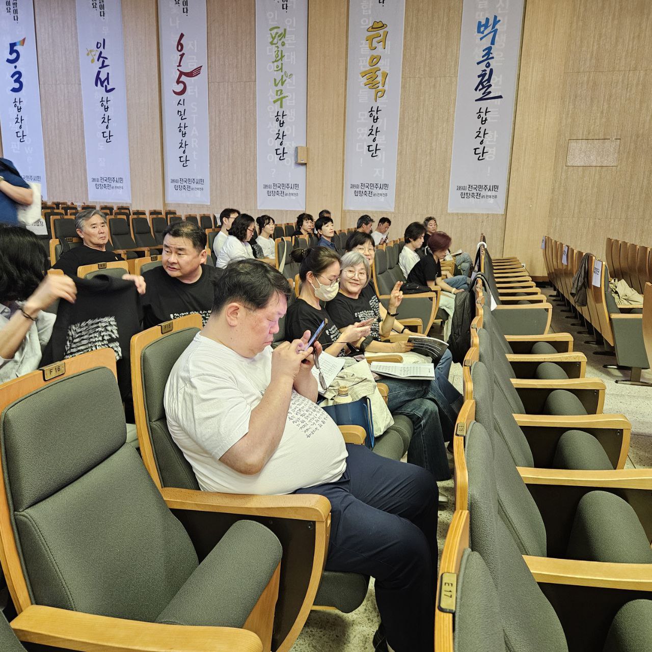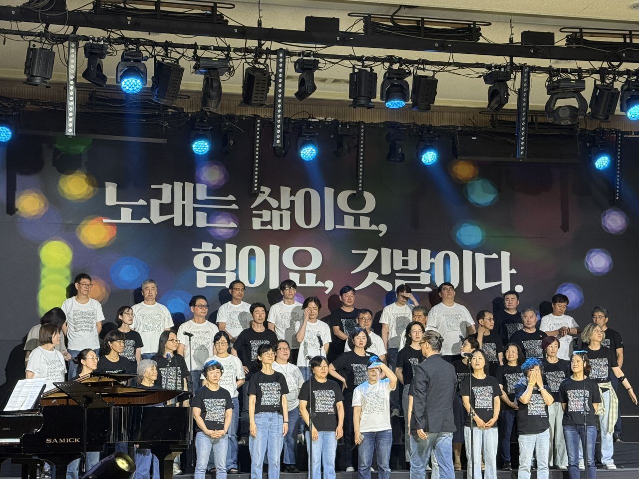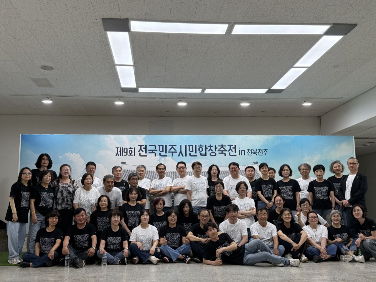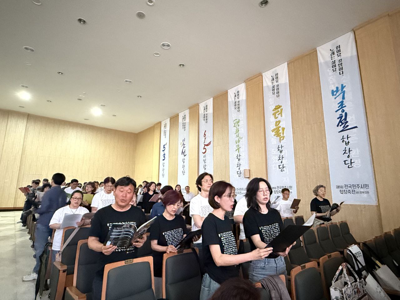 전주대학교 수퍼스타홀에서 개최된 전국민주시민합창축전은 이 축전이 단순한 음악 행사가 아니라 우리 사회의 민주, 인권, 평화의 가치를 널리 알리고 실천하는 연대의 장임을 상징적으로 보여줍니다. 올해 축전은 동학농민혁명과 전주화약(全州和約)의 역사적 의미를 되새기며 전국 각지에서 모인 12개 시민합창단 300여 명이 한 무대에서 화합의 하모니를 보여주었습니다.