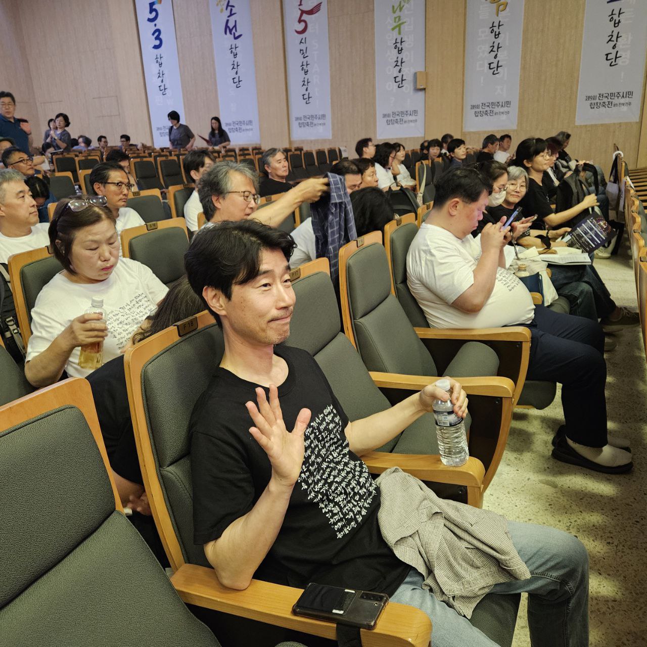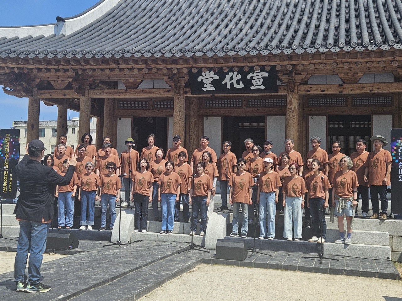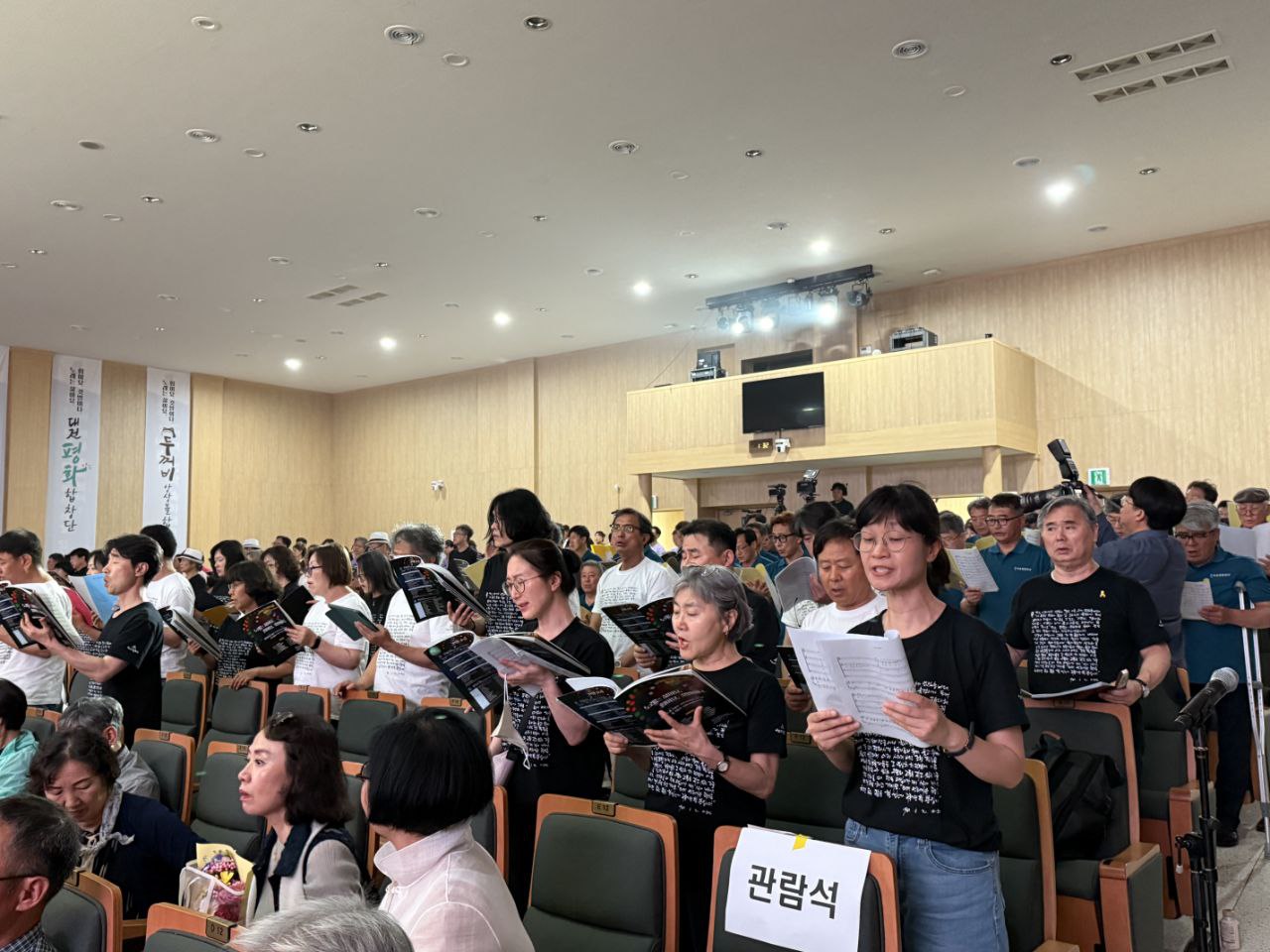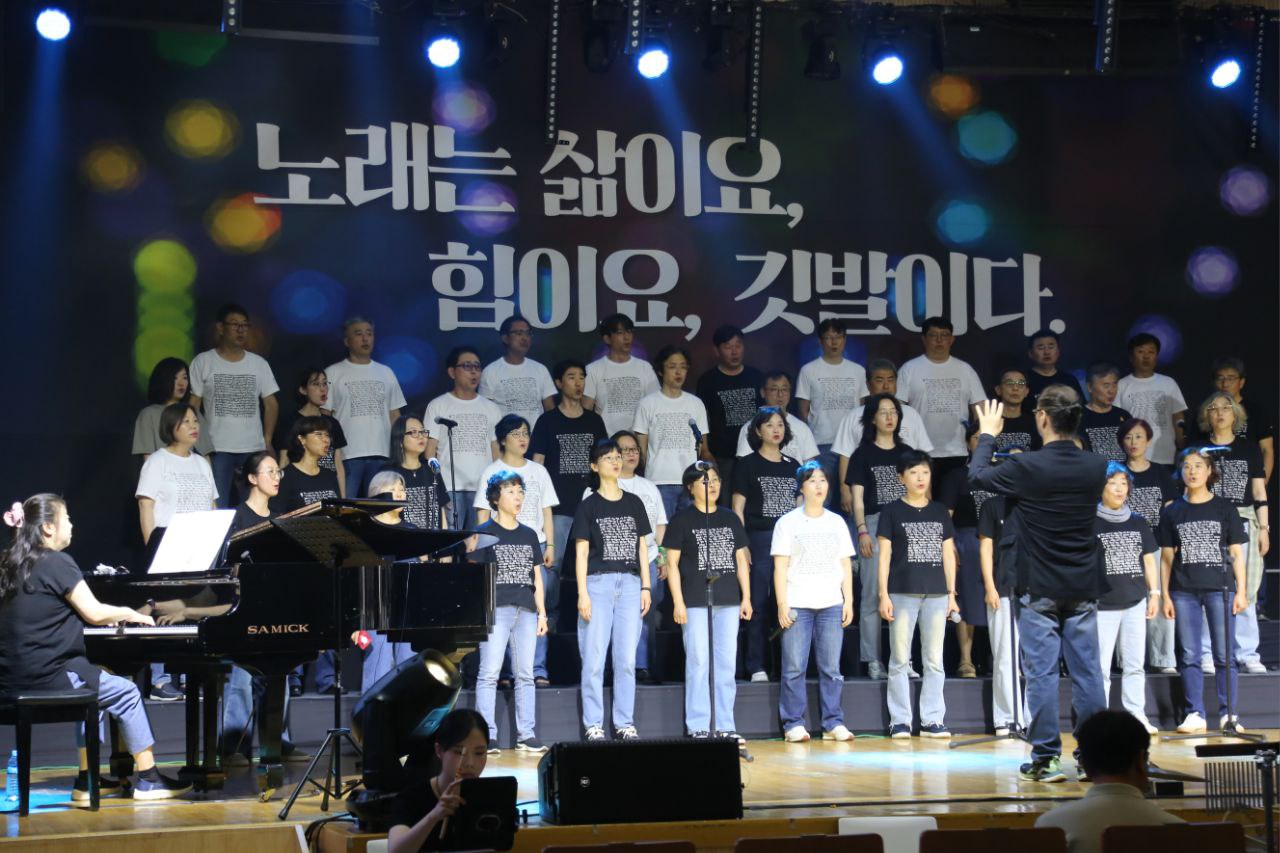 전주대학교 수퍼스타홀에서 개최된 전국민주시민합창축전은 이 축전이 단순한 음악 행사가 아니라 우리 사회의 민주, 인권, 평화의 가치를 널리 알리고 실천하는 연대의 장임을 상징적으로 보여줍니다. 올해 축전은 동학농민혁명과 전주화약(全州和約)의 역사적 의미를 되새기며 전국 각지에서 모인 12개 시민합창단 300여 명이 한 무대에서 화합의 하모니를 보여주었습니다.