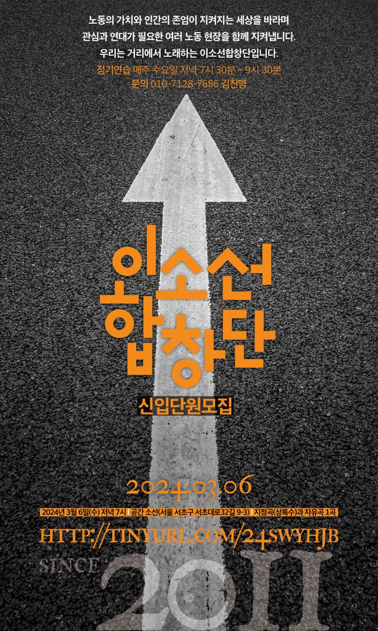 전태일 열사와 이소선 어머니의 뜻을 잇는 이소선합창단에서 2024년 신입 단원을 모집합니다.