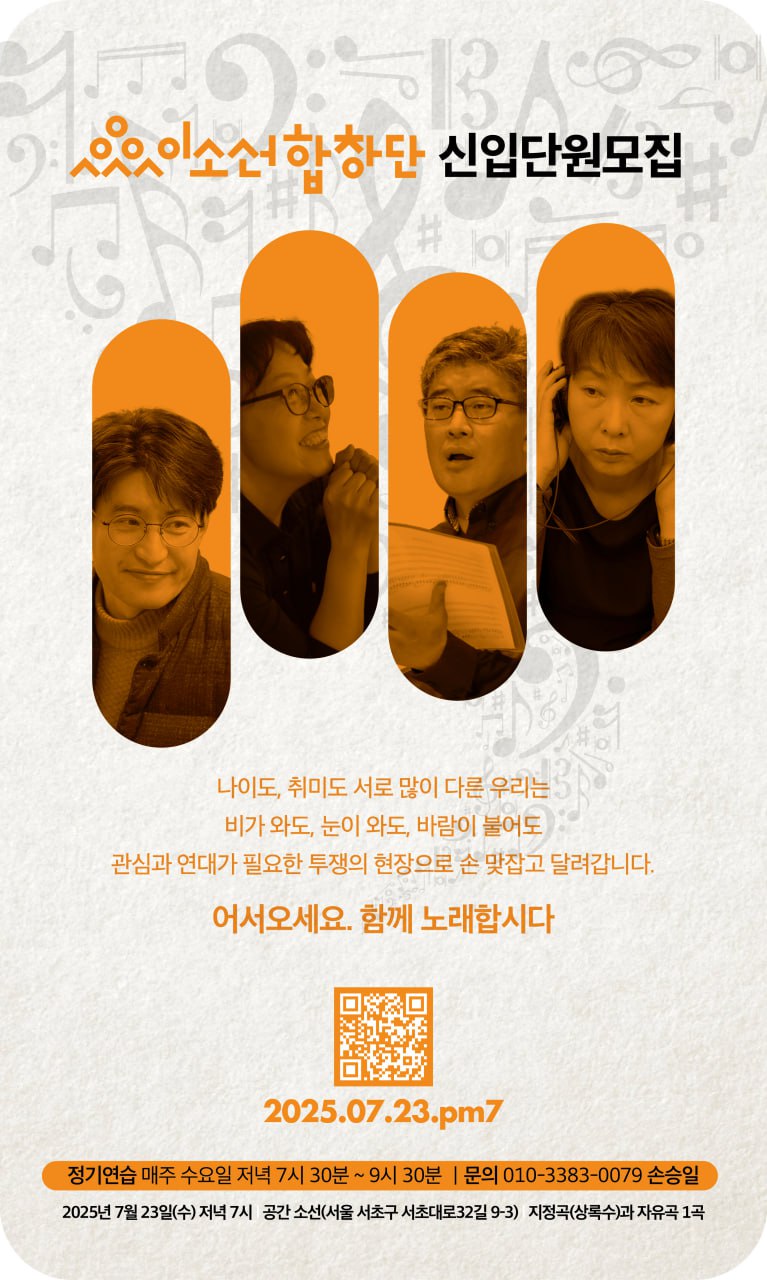 전태일 열사와 이소선 어머니의 뜻을 잇는 이소선합창단에서 신입 단원을 모집합니다.