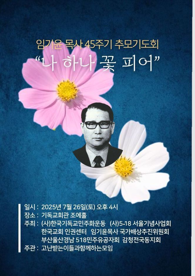 임기윤 목사의 죽음은 한 사람의 비극을 넘어, 한국 민주주의의 어두운 시간을 비추는 빛이 되었습니다. 오늘 우리가 누리는 자유는 이들의 헌신 위에 놓여 있습니다.