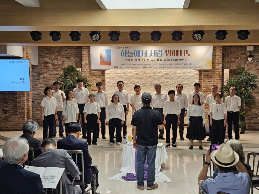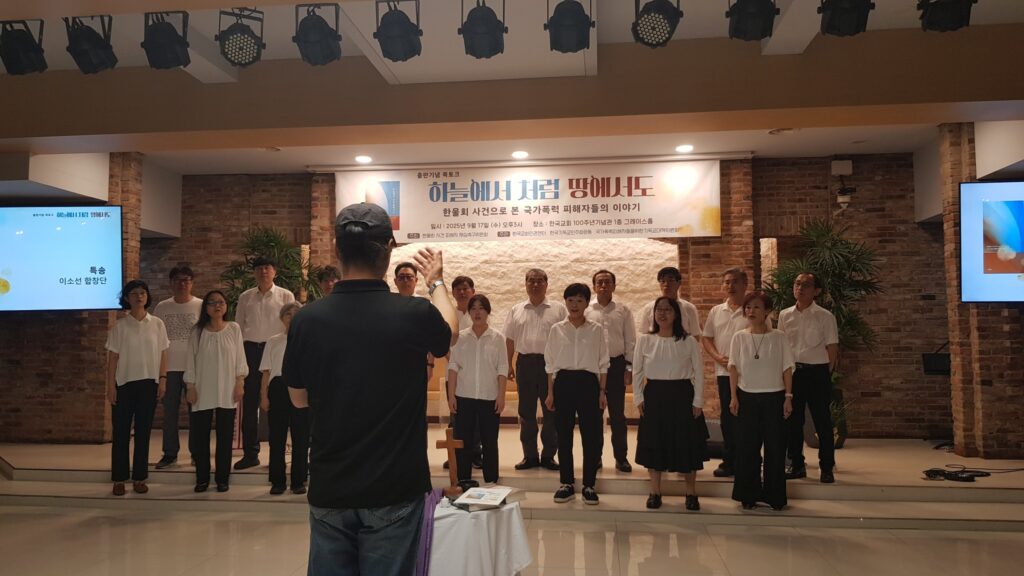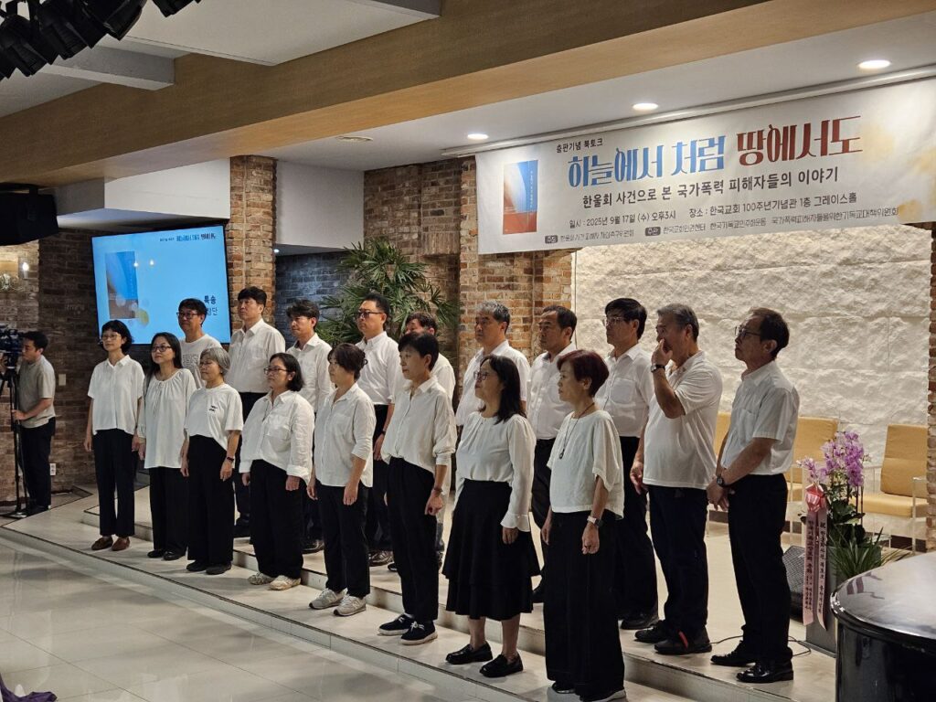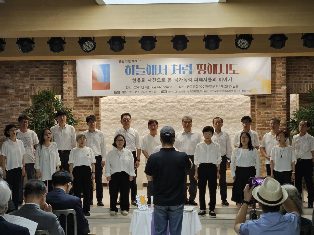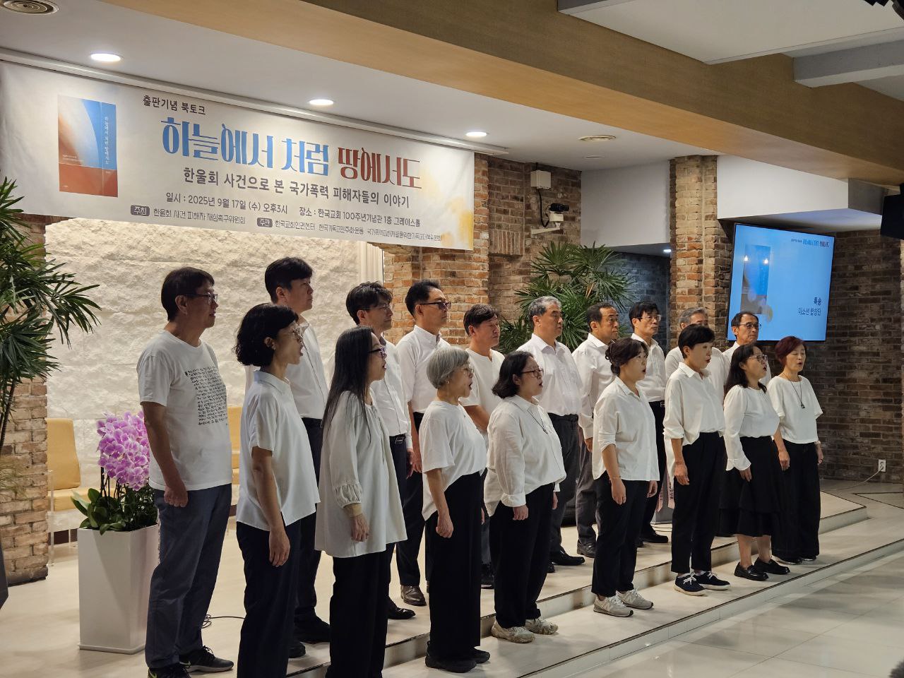 9월 17일 한국교회100주년기념관에서 열린 출판기념 북토크 “하늘에서처럼 땅에서도 – 한울회 사건으로 본 국가폭력 피해자들의 이야기” 자리에 이소선합창단이 함께했습니다.