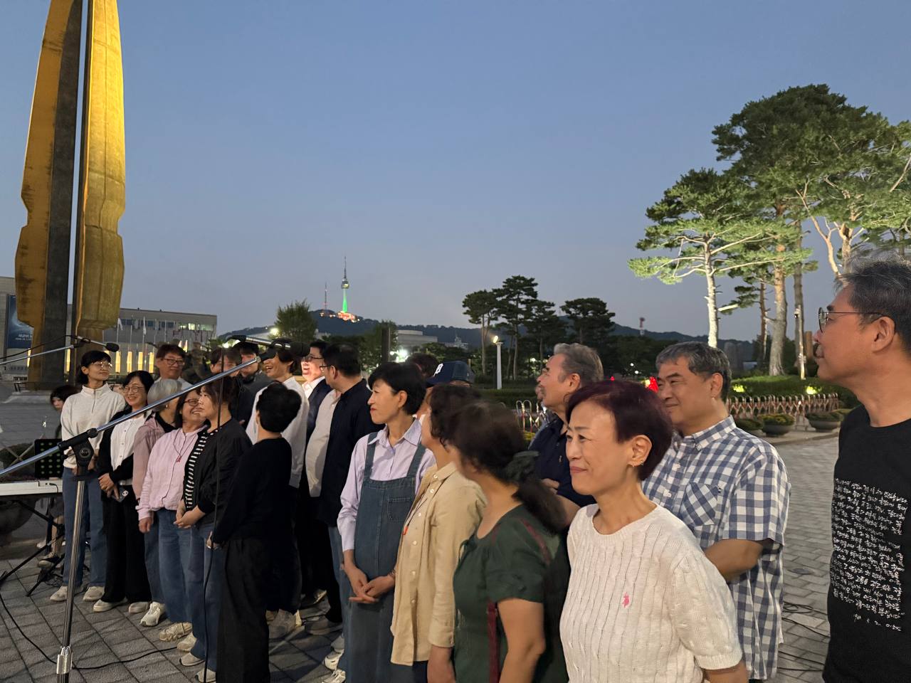 그리고 마지막으로 앵콜곡을 부르며 마무리했습니다. “여러분의 열화와 같은 앵콜 요청에 이제는 마지막 곡을 하겠습니다. 솔아 푸르른 솔아, 여러분과 함께하겠습니다.”
