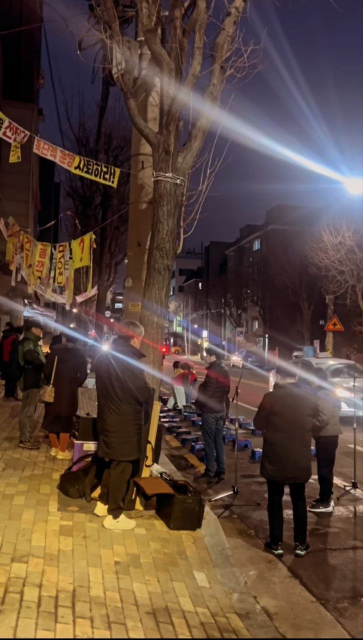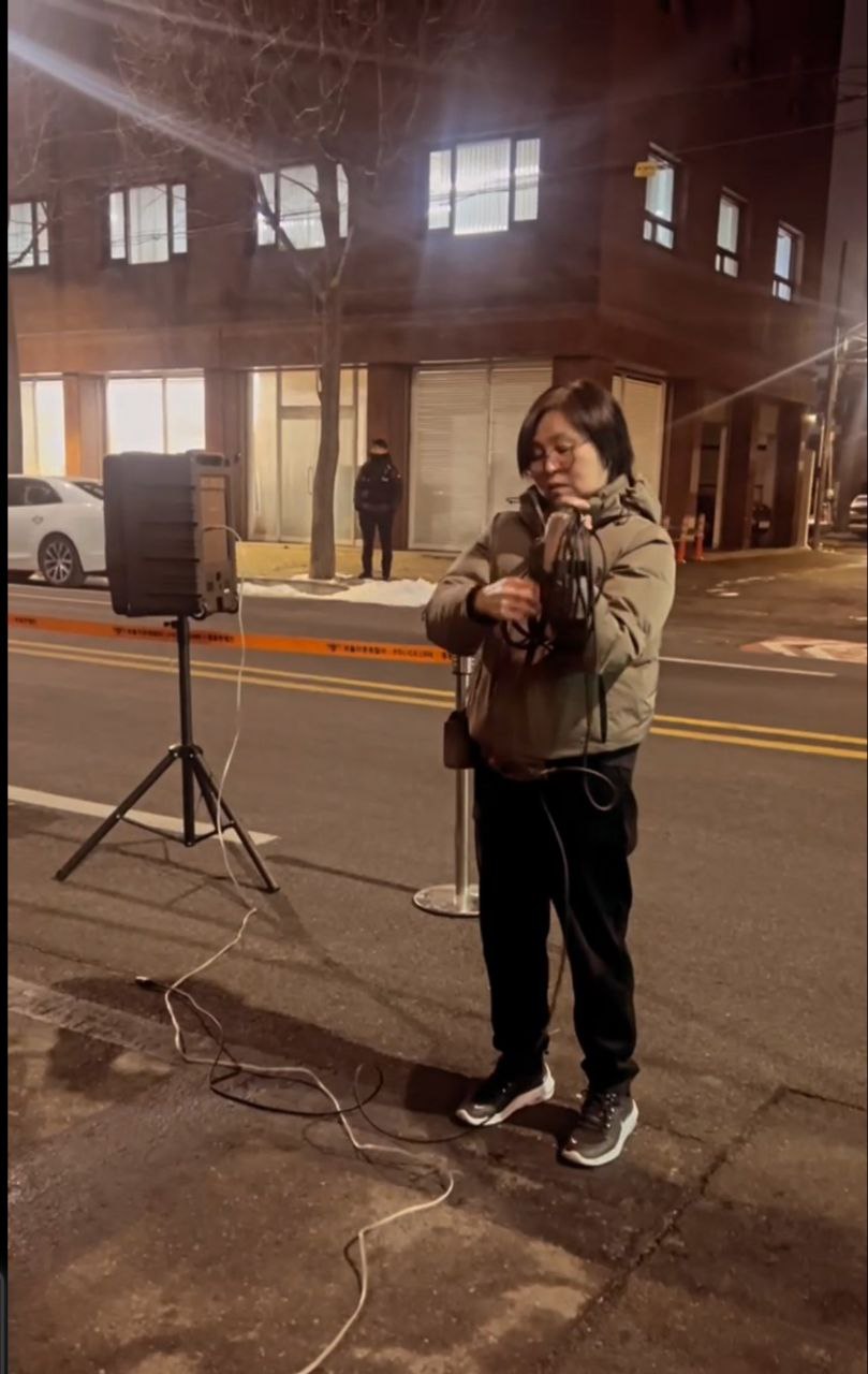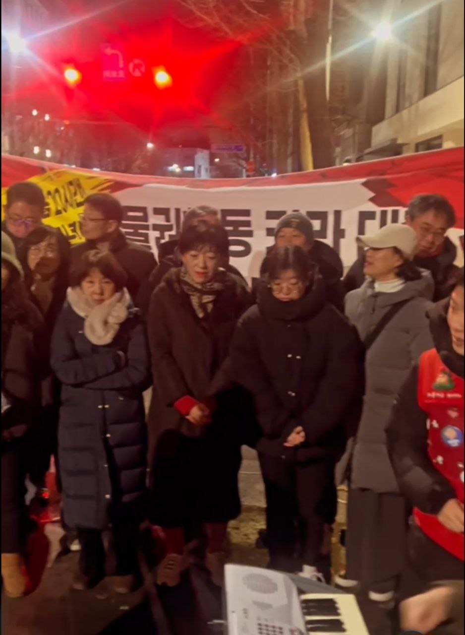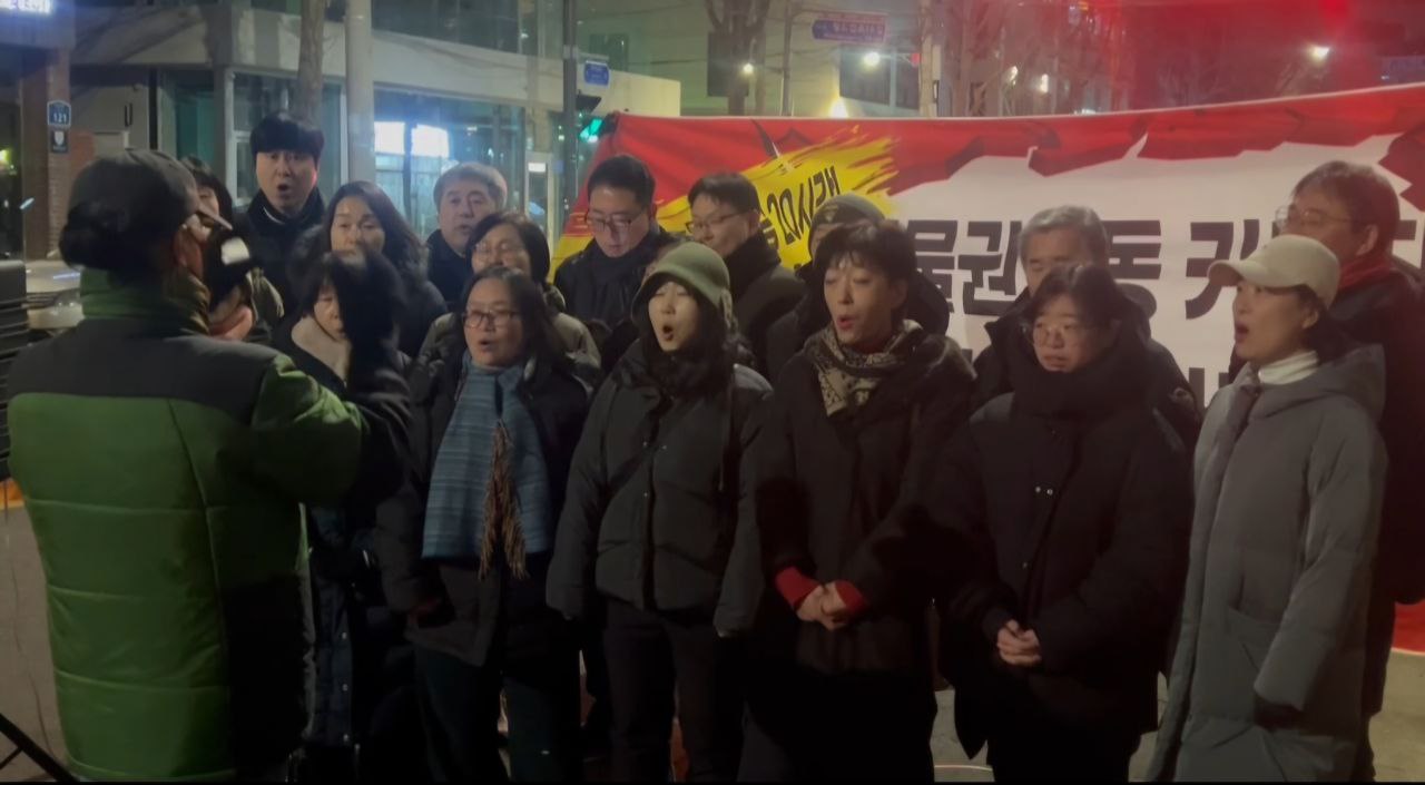 “안녕하세요. 연대를 요청하면 어디든 달려가는 이소선합창단입니다. 이번 공연은 창단 이래 가장 열악한 조건 속에서 진행되고 있는 무대입니다. 아마 오늘 이 자리에 함께한 집회자들의 마음도 이러한 심정과 크게 다르지 않을 것이라 생각합니다. 방송차와 기본적인 시설조차 갖춰지지 않은 상황이지만, 다음에는 더 나은 조건에서 다시 이 자리에 설 수 있도록 노력하겠습니다. 그리고 집회 조건에 대한 아쉬움보다 더 간절한 바람으로, 조속한 시일 내에 이 집회가 마무리되어 여러분이 동물들과 함께 더 안전하고 존중받는 환경에서 활동할 수 있기를 합창단 모두의 마음으로 기원하겠습니다.”