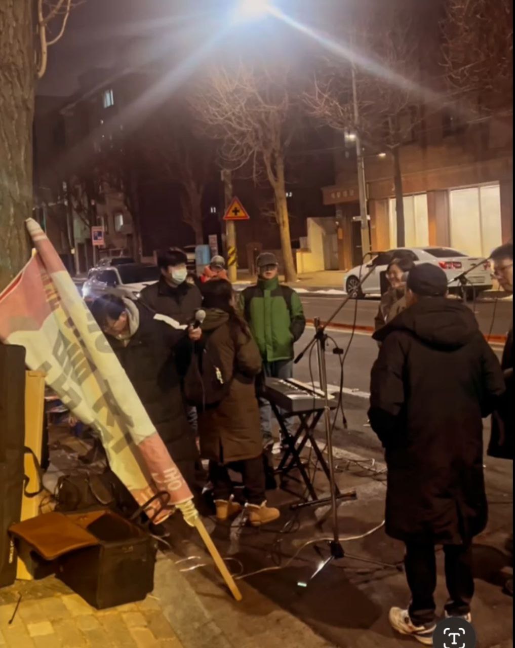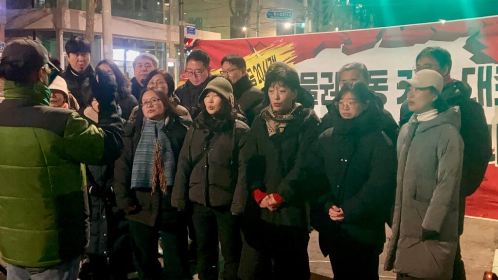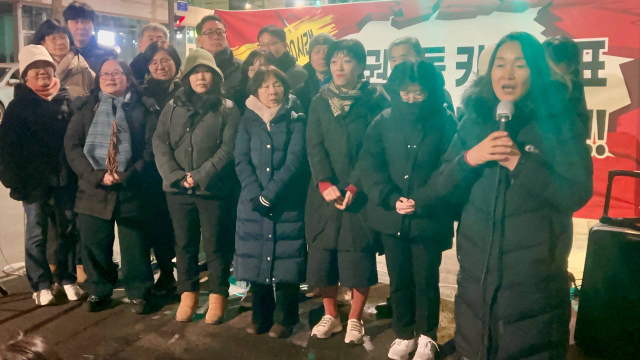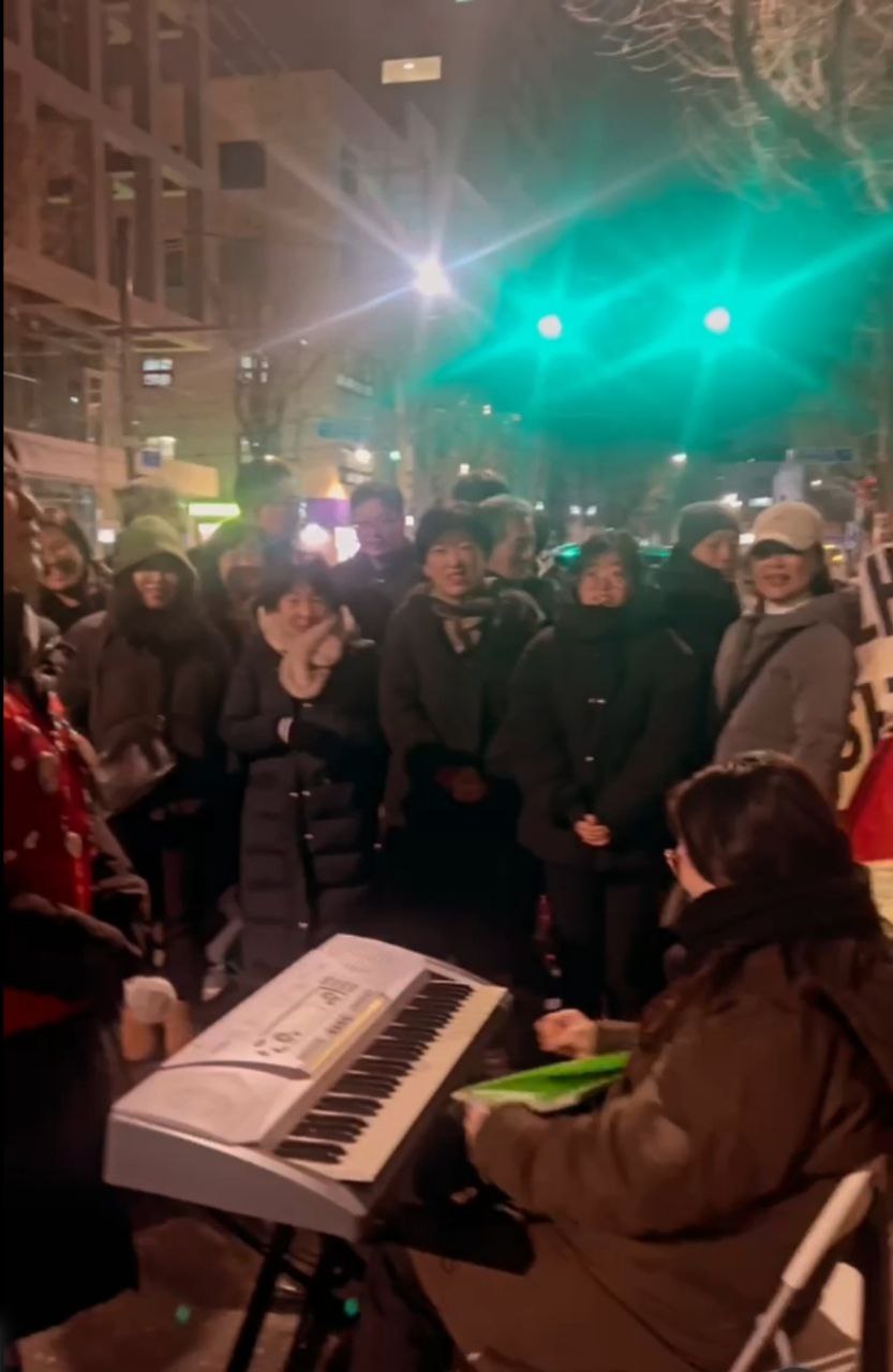 “안녕하세요. 연대를 요청하면 어디든 달려가는 이소선합창단입니다. 이번 공연은 창단 이래 가장 열악한 조건 속에서 진행되고 있는 무대입니다. 아마 오늘 이 자리에 함께한 집회자들의 마음도 이러한 심정과 크게 다르지 않을 것이라 생각합니다. 방송차와 기본적인 시설조차 갖춰지지 않은 상황이지만, 다음에는 더 나은 조건에서 다시 이 자리에 설 수 있도록 노력하겠습니다. 그리고 집회 조건에 대한 아쉬움보다 더 간절한 바람으로, 조속한 시일 내에 이 집회가 마무리되어 여러분이 동물들과 함께 더 안전하고 존중받는 환경에서 활동할 수 있기를 합창단 모두의 마음으로 기원하겠습니다.”
