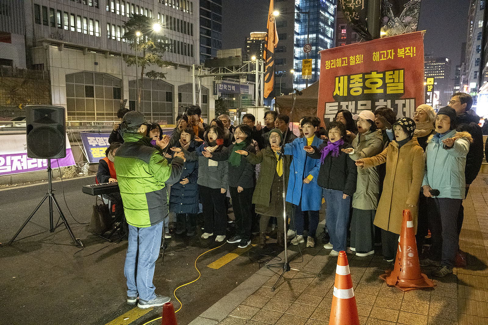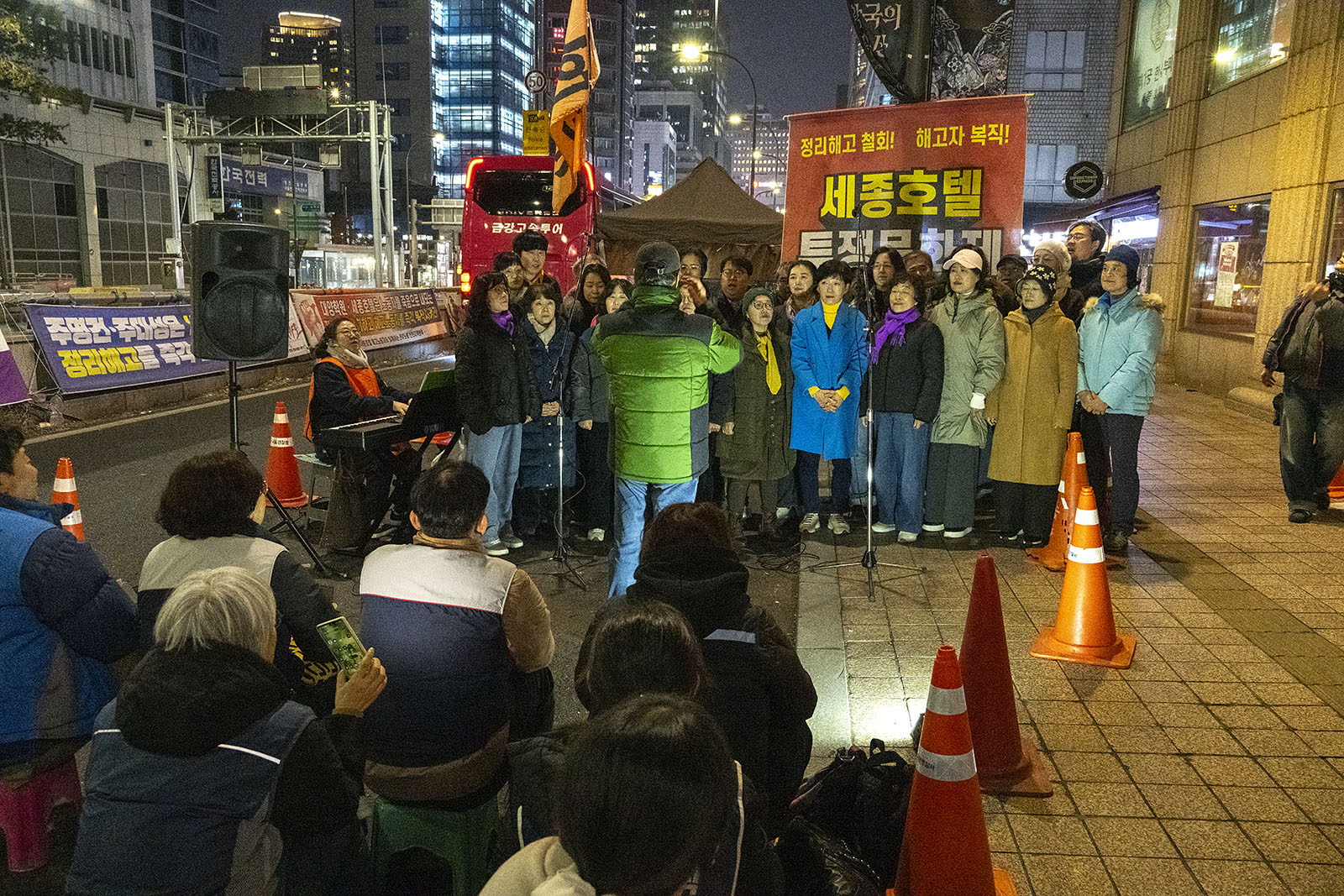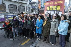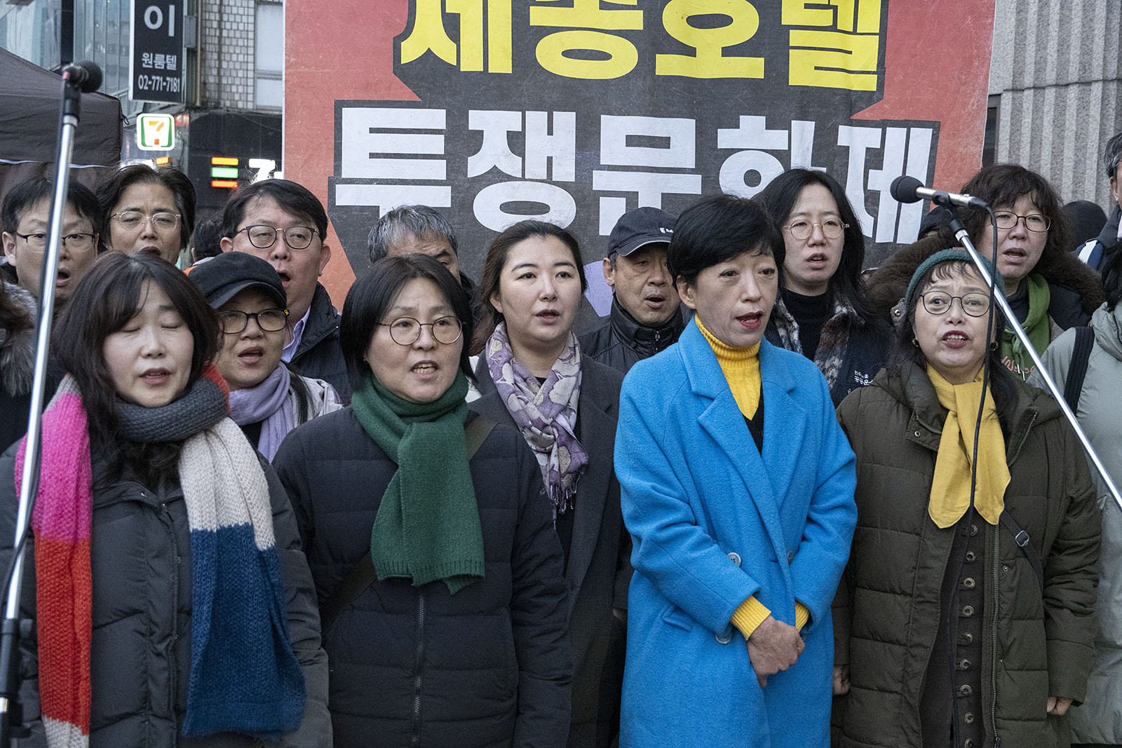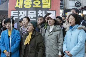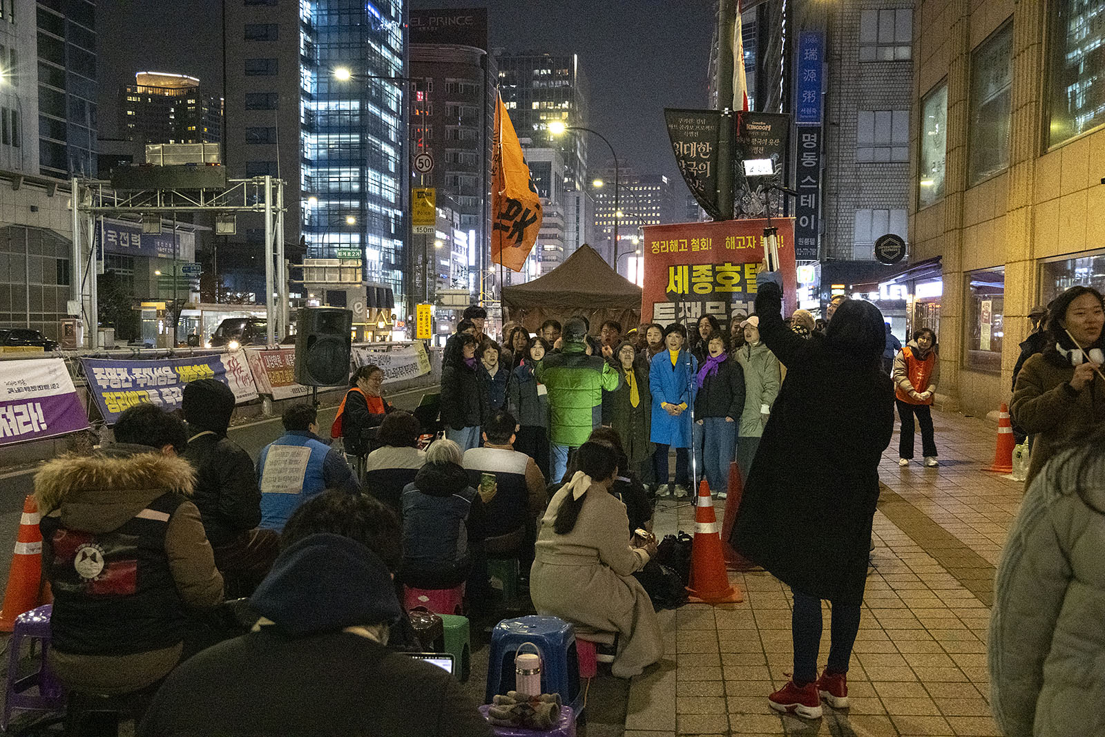 명동의 풍경은 매일 비슷하게 반복된다. 한국을 찾은 수많은 외국 관광객들과 내국인들이 뒤섞이고 그들에게 물건을 파는 상인들이 매일 비슷하게 되풀이되는 그 풍경을 만들어낸다. 그러나 명동의 목요일은 다르다. 목요일의 풍경이 다른 것은 명동역의 10번 출구를 나가 세종호텔 앞에서 만나는 집회가 그 날 있기 때문이다. 세종호텔 앞의 집회는 목요일이면 어김이 없다. 부당한 해고로 세종호텔에서 쫓겨난 노동자들의 집회이다. 2026년 2월 12일 목요일에도 지나는 사람들에게 세종호텔 투쟁문화제임을 알리는 이 집회는 어김이 없었다. 노동자들은 해고자의 원직복직을 위해 힘을 모아 싸우고 있다. 집회는 다시 직장으로 돌아가기 위한 노동자들의 투쟁 현장으로 보인다. 겉으로 보이는 싸움의 현장은 그렇다.