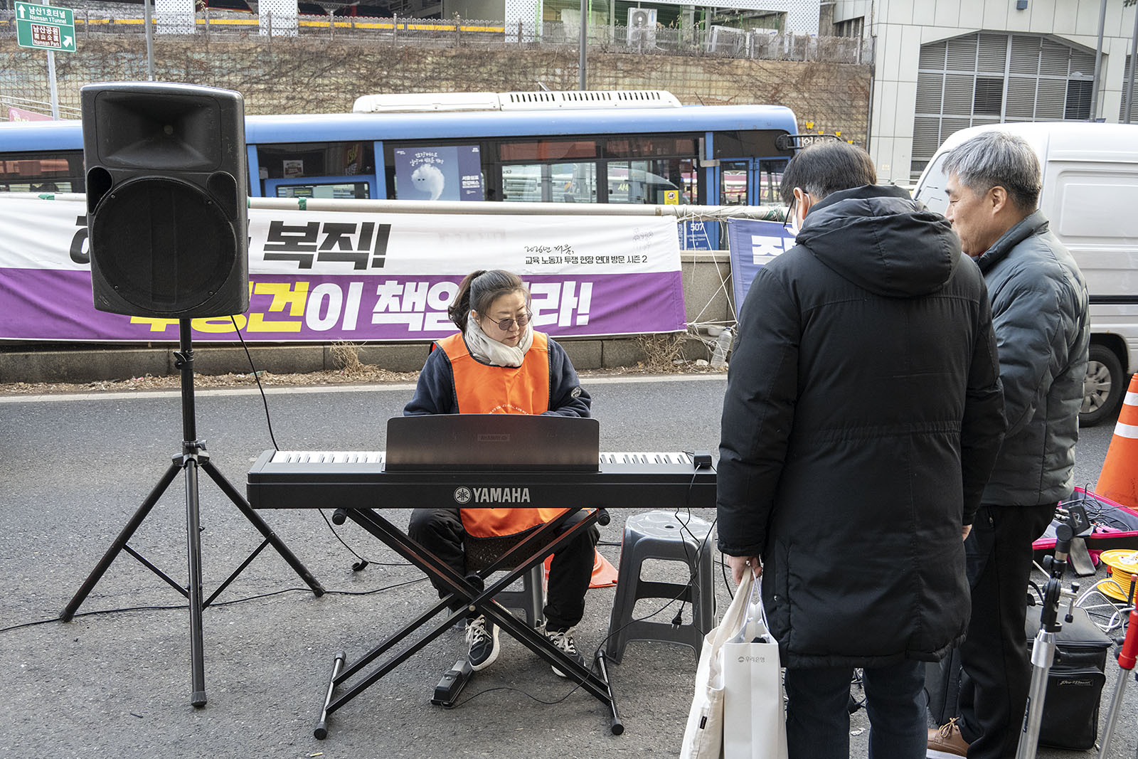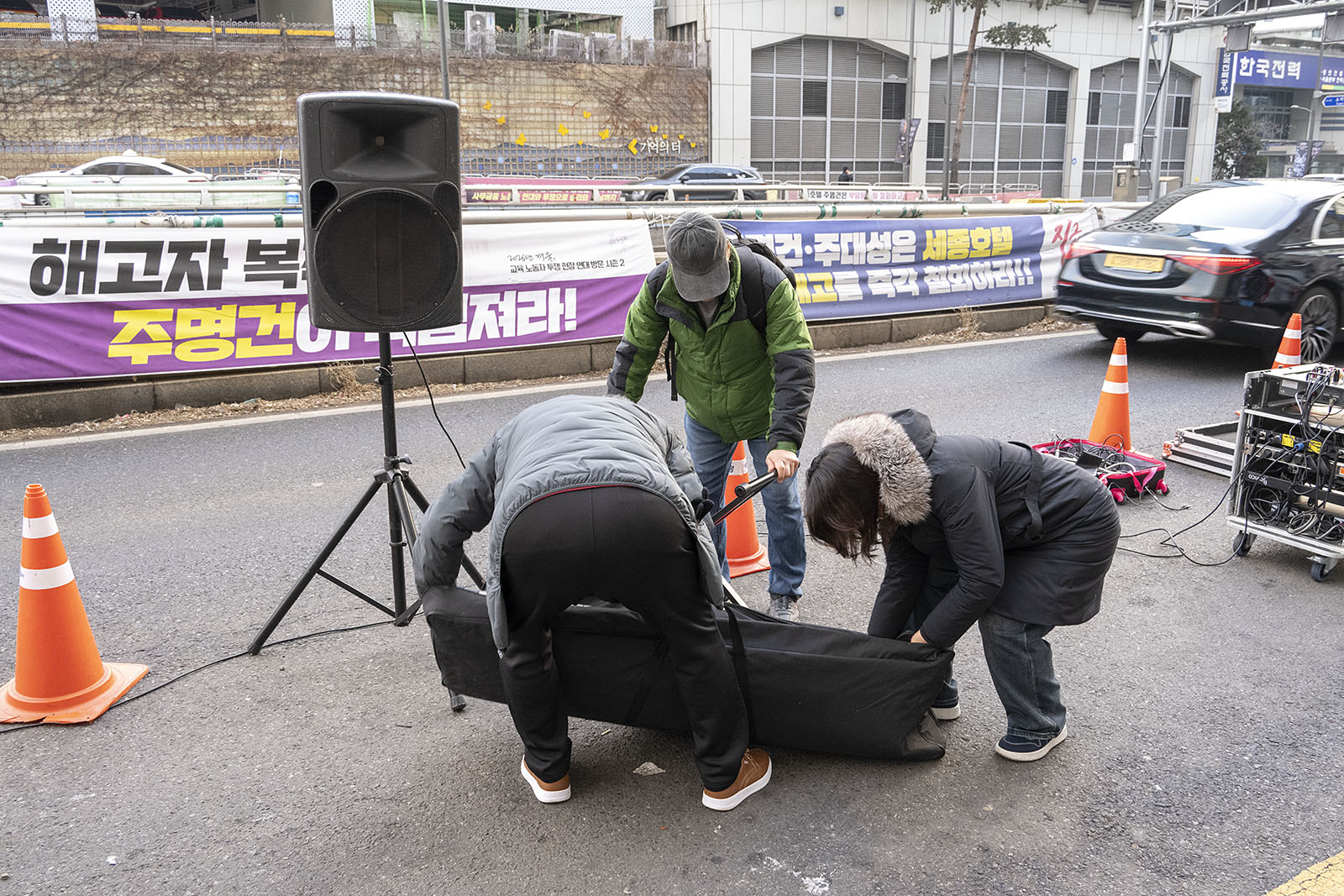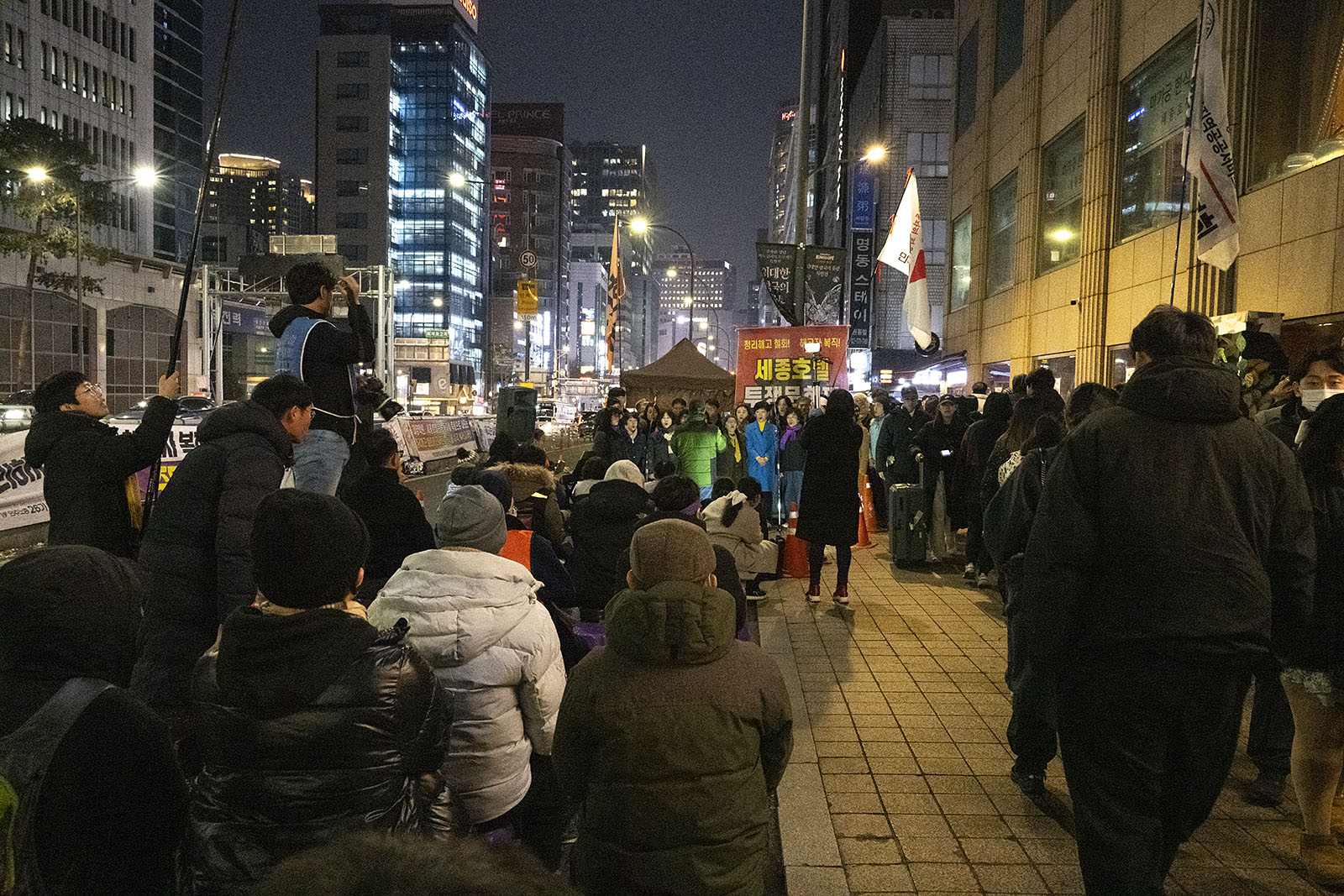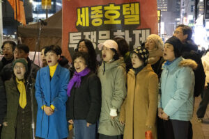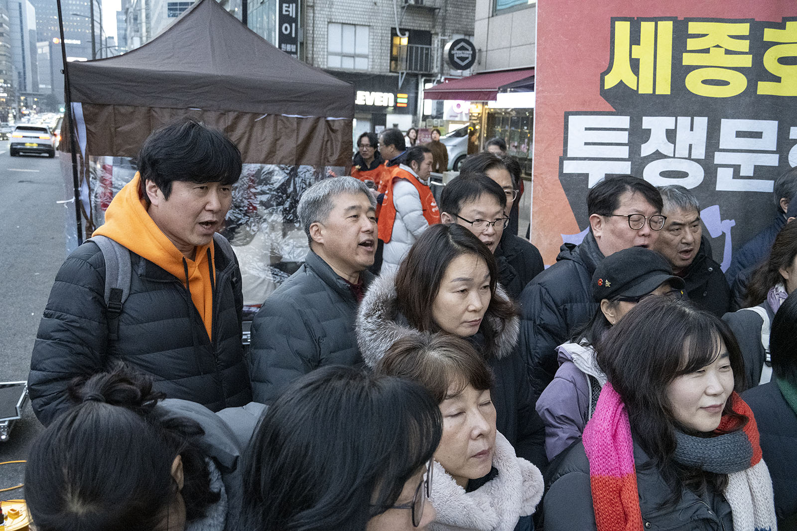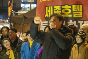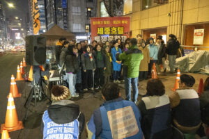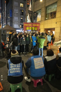 명동의 풍경은 매일 비슷하게 반복된다. 한국을 찾은 수많은 외국 관광객들과 내국인들이 뒤섞이고 그들에게 물건을 파는 상인들이 매일 비슷하게 되풀이되는 그 풍경을 만들어낸다. 그러나 명동의 목요일은 다르다. 목요일의 풍경이 다른 것은 명동역의 10번 출구를 나가 세종호텔 앞에서 만나는 집회가 그 날 있기 때문이다. 세종호텔 앞의 집회는 목요일이면 어김이 없다. 부당한 해고로 세종호텔에서 쫓겨난 노동자들의 집회이다. 2026년 2월 12일 목요일에도 지나는 사람들에게 세종호텔 투쟁문화제임을 알리는 이 집회는 어김이 없었다. 노동자들은 해고자의 원직복직을 위해 힘을 모아 싸우고 있다. 집회는 다시 직장으로 돌아가기 위한 노동자들의 투쟁 현장으로 보인다. 겉으로 보이는 싸움의 현장은 그렇다.