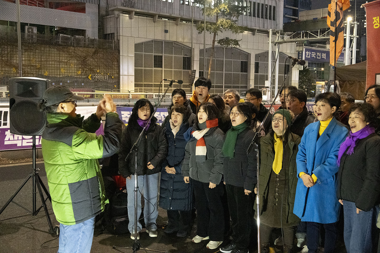 합창단이 부른 두 번째 노래는 <단결한 민중은 패배하지 않는다> 였다. 노래는 자기장을 만드는 노동의 힘이 뭉쳐서 이룩하는 싸움으로 이루어지며 그 싸움이 패배하는 법은 없다고 말한다. 아니 패배해선 안되는 것이리라. 돈에 미혹되어 삶이 방향을 잃는 세상이 우리의 미래가 되어선 안된다. 노동자들은 방향을 흔드는 자본에 맞서 뭉치고 단결하여 싸우고 있다.